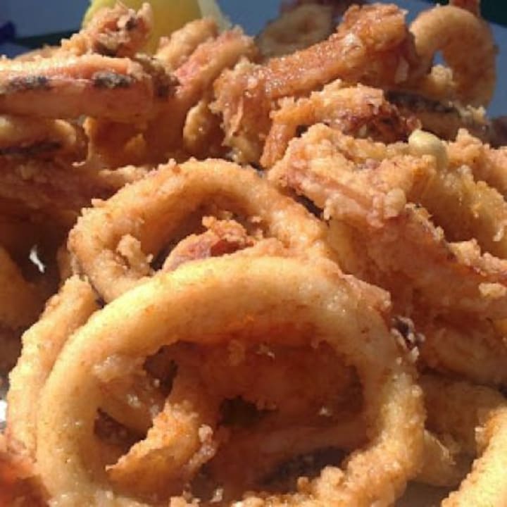 Rabas or fried squid are usually the main part of a seafood tapa on the Cantabrian coast. The dish is prepared by slicing the squid into strips or rings and then lightly dipping them into batter or breading and frying until they're crispy, The dish is lightly seasoned with salt and when served drizzled with lemon juice.