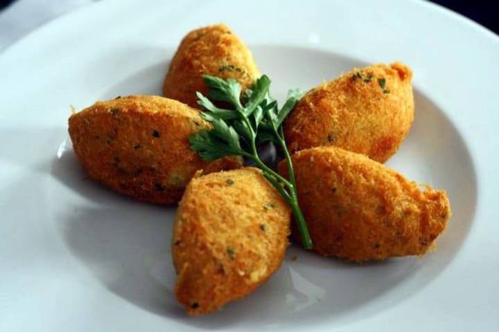 Croquetas de bacalao are Spanich fritters made with cod. Usually they are made with a bechamel base or used with mashed potatoes. Both of these options are well-seasoned and mixed with cooked, flaked salt cod and shaped into a desired form.