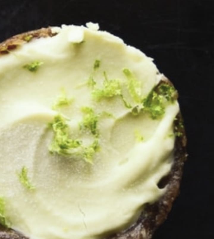 1. In food processor blend up a handful of almonds, as fine as you wish. 2. Once your dates have made a sticky consistency, blend up or crush up by hand your almonds. Mix you crushed almonds with dates, easily done in the same food processor to save up your time. Once you have mixed the two ingredients finely, and made a sticky consistency. Your base for you Mini Avocado Cakies is finished. 3. By using muffin moulds or cases make your cake bases by lifting up your dough to the sides, making like a little case with higher sides. 4. With fork or any other kitchen tool smash up 1/2 of your avocado until puré like consistency, add in your lime juice and 1/2 tsp. honey, and once again mix everything thoroughly. 5. Lastly, put you avocado cream into your little almond/date cases. Place you Mini Avocado Cakies into refrigerator for around 20min or until you avocado cream is nice and set. For extra luxury sprinkle some lime zest for detail and enjoyment!