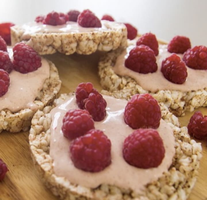 1. Blend together 150g of frozen of fresh Strawberries, Peanut Butter. Greek Yogurt, a pinch of salt and apple vinegar (optional, for extra flavour). Blend until think and creamy, but still slightly spreadable consistency. 2. Once your creamy spread is ready with smooth consistency, apply it on you crispy rice or buckwheat cake. Enjoy!