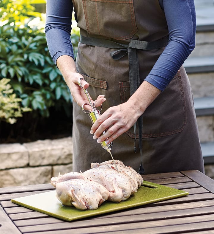 If you're planning on injecting large sides of meat, confirm the needle may be a decent length which it's an honest capacity (around 120ml). Also ensure it's a pleasant sharp end. If you're meaning to inject thicker bastes, you'll need a slightly wider needle diameter. If the needle clogs, you'll got to sieve your marinade to urge larger particles out.
