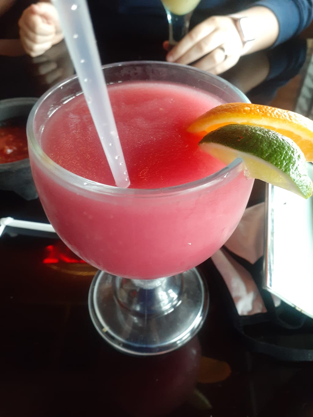 I have never had a problem with this restaurant or had a bad experience, the drinks are so good that I finished my whole glass and had a little more, the chips they put on the table are great to snack on if you plan on drinking.