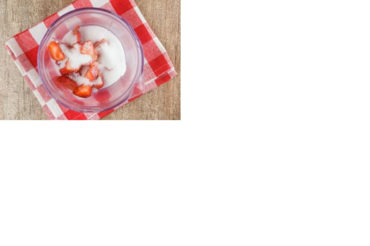 1 Puree the strawberries and erythritol in a food processor.