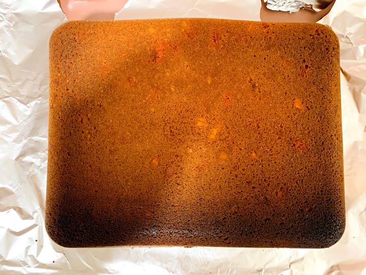 - Pour in your cake mixture and then tap the filled dish on the table so that there are not any air bubbles left. The reason you do this is so that there is no air bubbles and because there is a lot of liquid in cherries. If the liquid gets out, it needs to go back into the cake. But, if you have air bubbles then it will trap in the bubbles and stop the cake from cooking in the middle. You will therefore be left with raw cake.