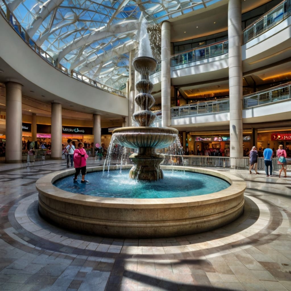 The fountain continued to sparkle under the mall’s lights. Coins clinked softly as children tossed them in, and the music store’s gentle melody drifted through the air. Couples, friends, and families moved about, each absorbed in their own little world yet sharing the same space. Women shopped, men walked past quietly, children laughed at the screens, and people ate leisurely at the food court. Everyone was busy yet content.