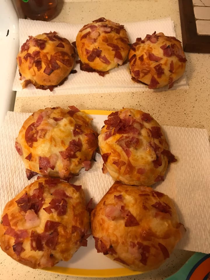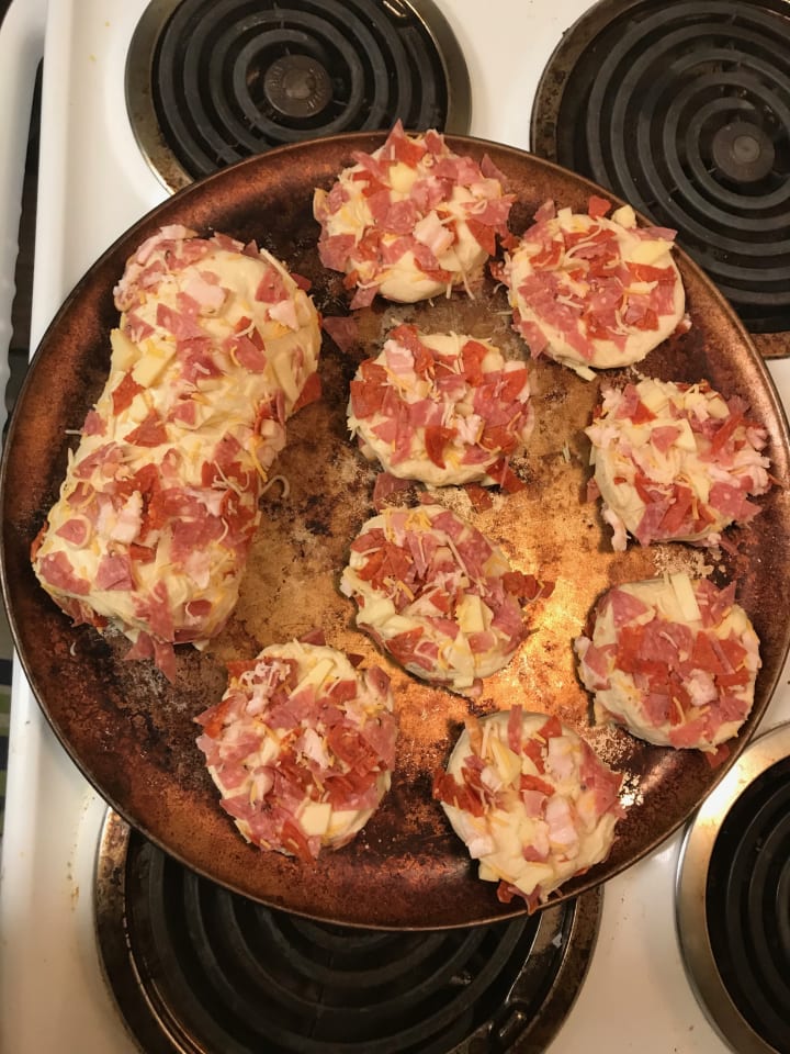 I also made biscuits covered in the meat and cheese mixture because I did not have enough dough or perhaps flatten the dough enough to use all the meat I cut up.