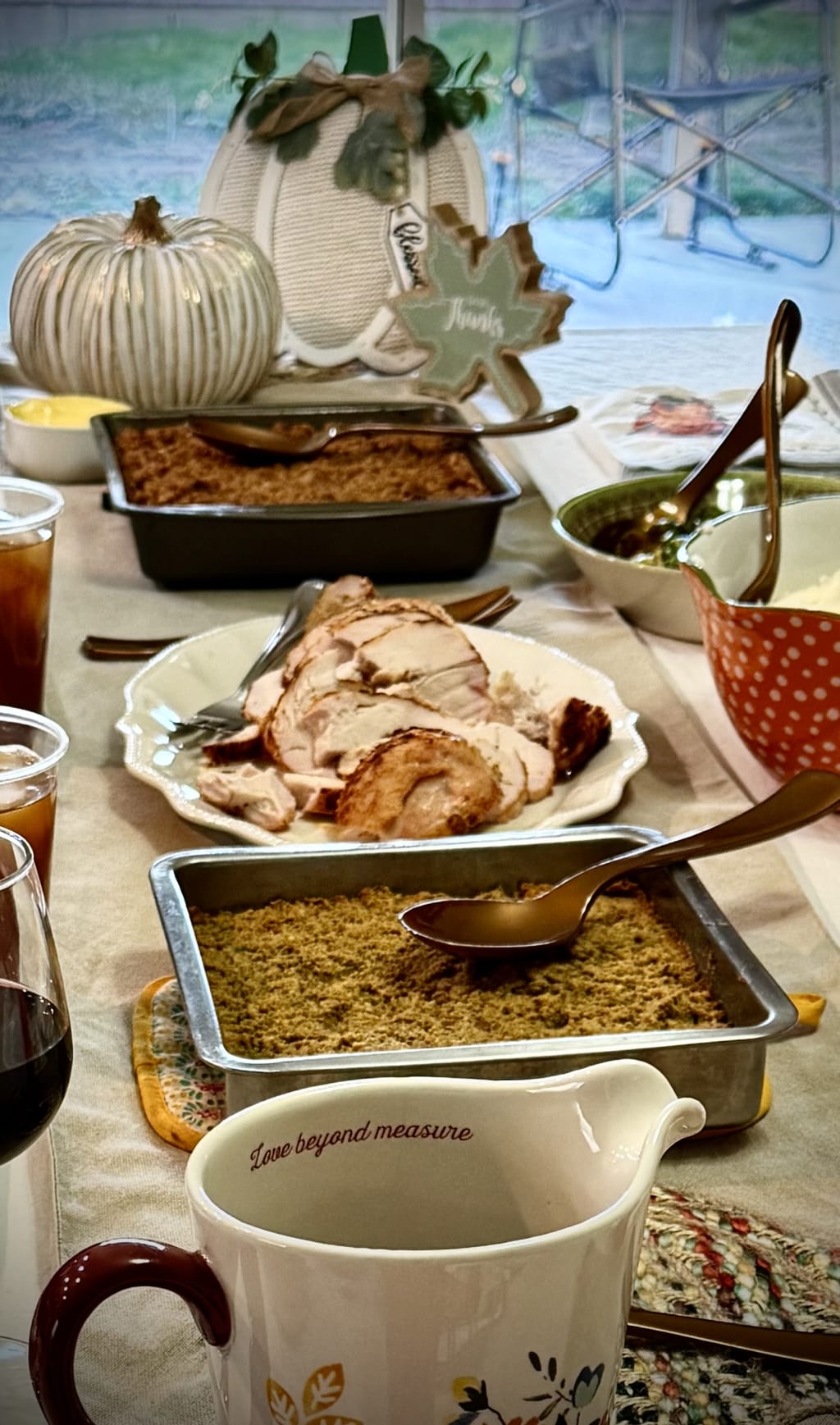 Thanksgiving belongs to Momma. It is her best season, I believe; she thrives amongst the gold and amber and crimson as though she was spun from autumn itself—her laughter crisp as the leaves, her hands warm as spice. The kitchen becomes her stage, and she moves with practiced certainty, measuring by memory, tasting by instinct. Every year, the house glows with pride of the decorations she has set, and the heady aroma of butter, garlic, and sage wafts through the halls, accompanied by the steady rhythm of her best knife chopping celery. The meal is always a spectacular feast, but the real star is not the turkey; At my mother's table, the cornbread dressing is the hero rather than the sidekick. The recipe is hers alone, passed from my grandmother's hands to my mother's hands, and, finally, under Momma's watchful eyes, to mine. This past Thanksgiving, in a kitchen two thousand miles away from hers, I stood before a countertop of cooling cornbread and ground sage, trying to summon her magic from memory.