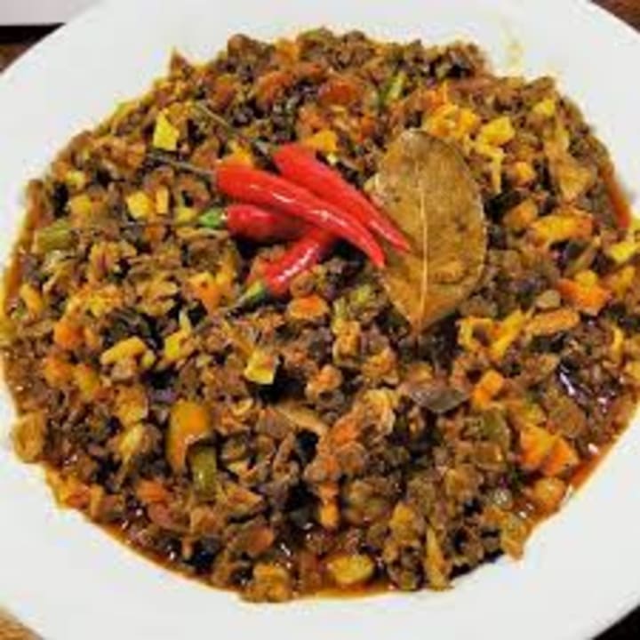 Chakna is a spicy stew that is prepared with goat tripe and other offal like chunks of liver, kidneys, intestines, and tongues with added onions, garlic, ginger, cardamom, sorghum, turmeric, salt, red chilli powder, black pepper, garam masala, fresh coriander, bay leaves, and green chilli peppers for extra flavor.