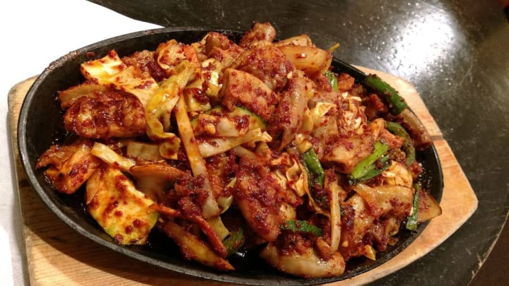 Gopchang-gui is a Korean dish that is made with grilled beef tripe - traditionally small intestines. The tube-shaped offal can be made plain or marinated and doused with a spicy sauce. When grilled it can be topped with various sliced vegetables. The dish is considered to be a great accompaniment to soju a traditional Korean spirit.