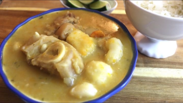 Sopa de pata is a traditional Salvadoran soup. It is prepared with tripe, cow's feet, sweet corn, green beans, chayotes, cassava, and bananas. The soup is flavored with onions, garlic, cumin, and achiote. The soup gets a rich and butter flavor from the cow hooves.
