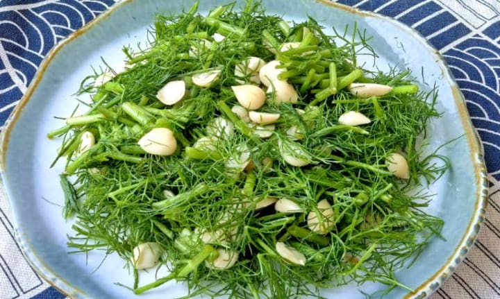 Flavor magic: Almonds’ richness balances fennel’s sharpness, while garlic and sesame oil create a refreshing palate-cleanser. Serve chilled over noodles or congee.