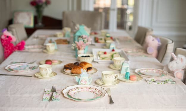 Kettle down everyone! Today, we will give you some mo-tea-vation to make the most out of social distancing. We partnered with Kate Aspen to host a chic party featuring the Tea Time Whimsy collection. We treated our family to homemade tea sandwiches as well as freshly baked pastries and macarons. We are excited to share our creativi-tea with you.