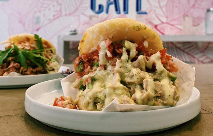 This restaurant was opened by a Venezuelan couple; at first, they just served Arepas, a Venezuelan sandwich. But now they serve other Venezuelan sandwiches like empanadas, & sweet treats such as Alfajores, Quesillo, gluten-free pastries, cocktails, craft beer.