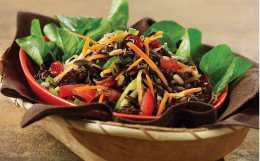 Scrape the rice into a large bowl and add the carrot, dried cranberries, tomato, scallions, pine nuts, and pumpkin seeds. Toss to mix. Add 1/2 c. vinaigrette and toss to coat. Cover and refrigerate for at least 1 hour. Salad may be served chilled or brought up to room temperature. To serve, divide the watercress among salad plates and top with the wild rice salad.