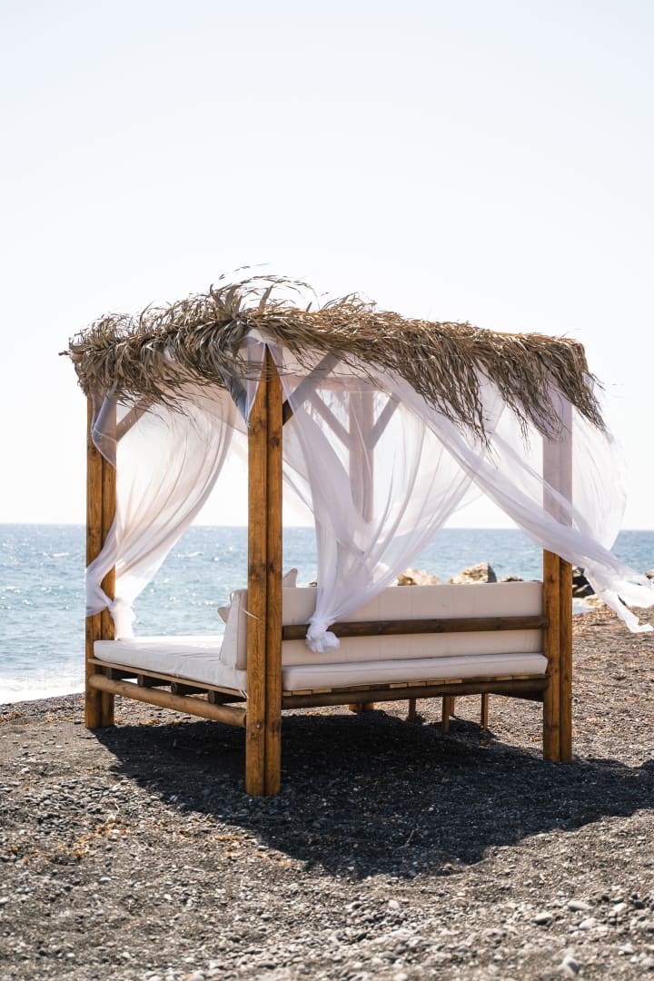 Greece has mild winters and wonderful summers, just what I needed right now. I sat totally absorbed in writing, the warm sun smilingly shining down on me under a queenly beach throne adorned with a feathery roof and silken curtains all around me. The silk is a bit of an exaggeration, but it sure felt like silk to me. It was a rental, but It made me feel self loved.