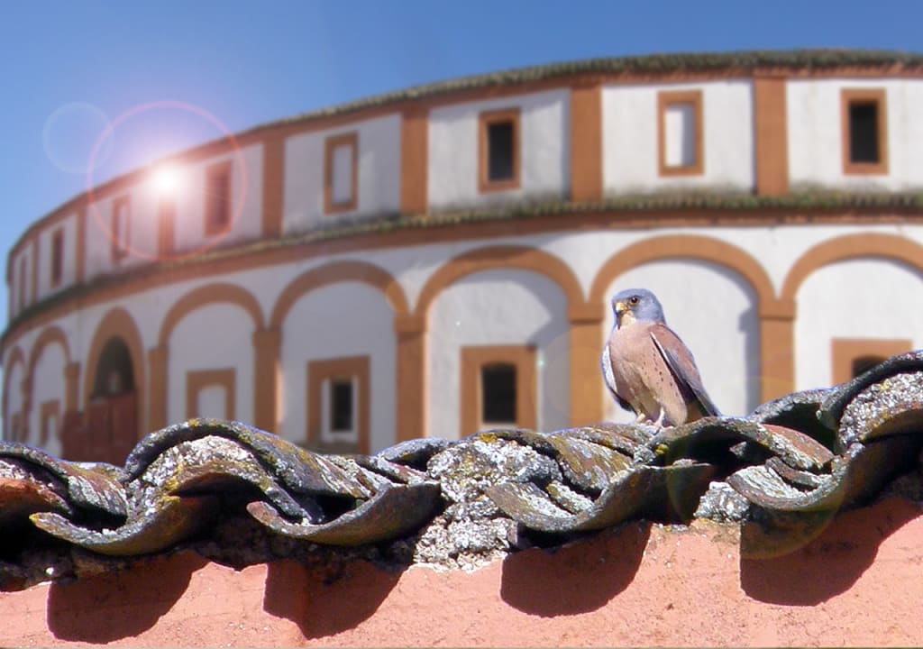 I, the author, created the feature image from two photographs I took at the Trujillo, Spain bullfighting arena, the site of a small breeding colony of Lesser Kestrels. The featured bird is a male Lesser Kestrel.
