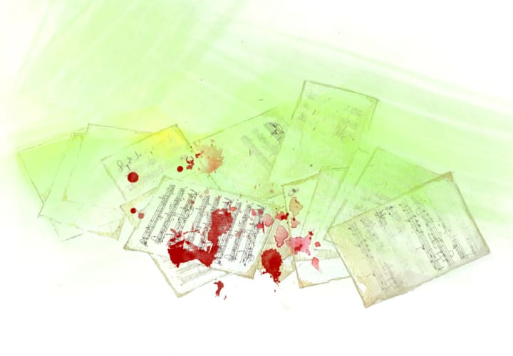 "Every bar, beat, cadenza, fugue, sonata, crotchet, quaver. Every chord and rhythm becomes my savior!" His head momentarily hung limp as his thoughts fired martellato.
