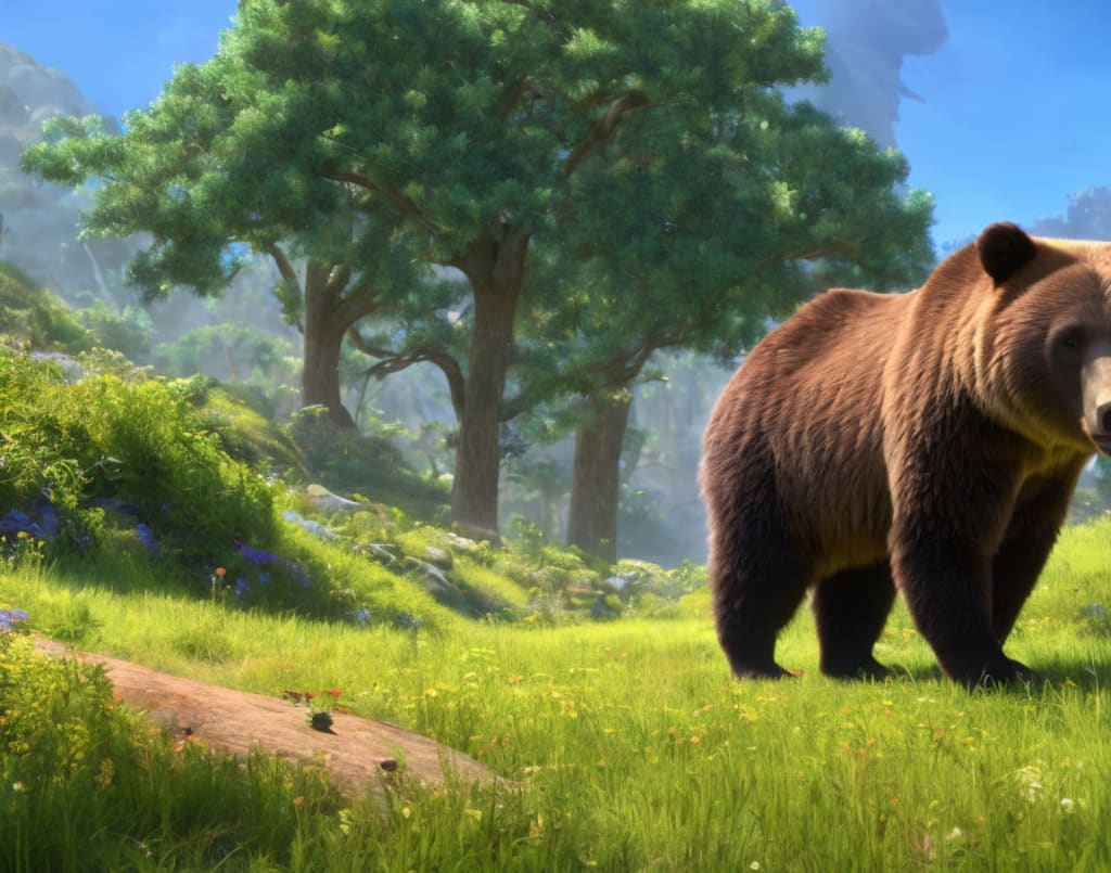 Grizzly's life was peaceful and idyllic, spent foraging for food, exploring the woods, and chatting with his animal friends. He had a special bond with a family of deer who lived nearby, and they often shared meals and stories together. Grizzly had even taught the young fawn how to speak, and the little deer could now communicate with the other animals in the forest as well.