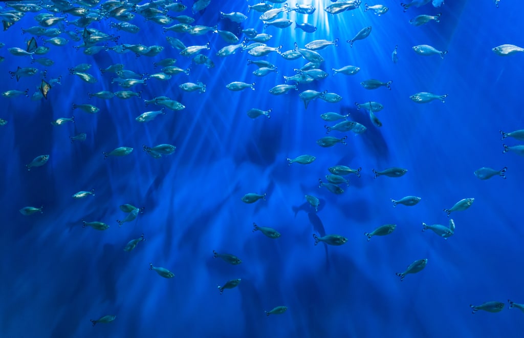 There was a sudden flash of color, the shine of scales. And then Reginald saw them. Fish. Hundreds of them, swimming in little groups past the glass. The vibrant colors and unique shapes made them so beautiful and so fascinating to behold! He stepped closer to the glass to get a better view. And most wondrously, the fish stopped moving past. It seemed they were getting closer to the glass now too. More and more fish gathered right where he was standing. Funny little creatures. He had imagined most fish to be rather skittish, but these were entirely friendly.