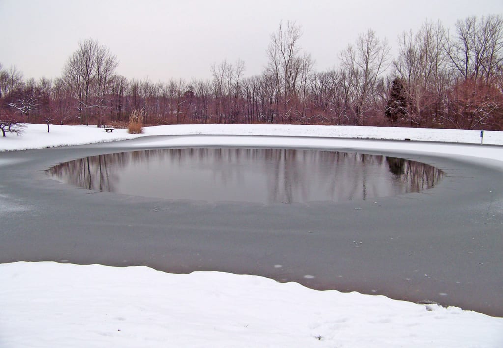 Out he went, braving the cold weather and arriving at the lip of the frozen pond. He remembered his dad’s methods of fishing. Hook your bait, let it sink deep into the water. Then, it’s a patience game. He would say.
