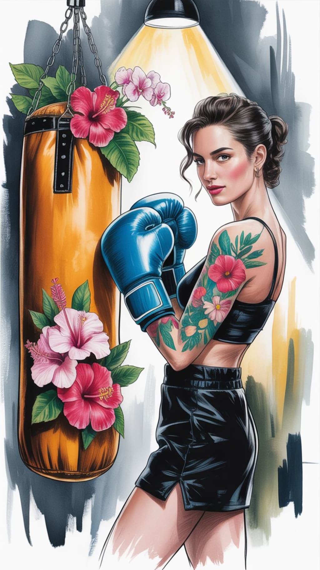 She stepped between the ropes like a dancer entering the stage, only her tutu was replaced with hand wraps, and her slippers were black Everlast boots. Her fists were taped tight, her braids pulled back into a single, stubborn tail. No music played, but the rhythm of the gym was alive: jump ropes slapping against the floor, gloves hitting mitts, a coach barking commands with a voice like gravel.