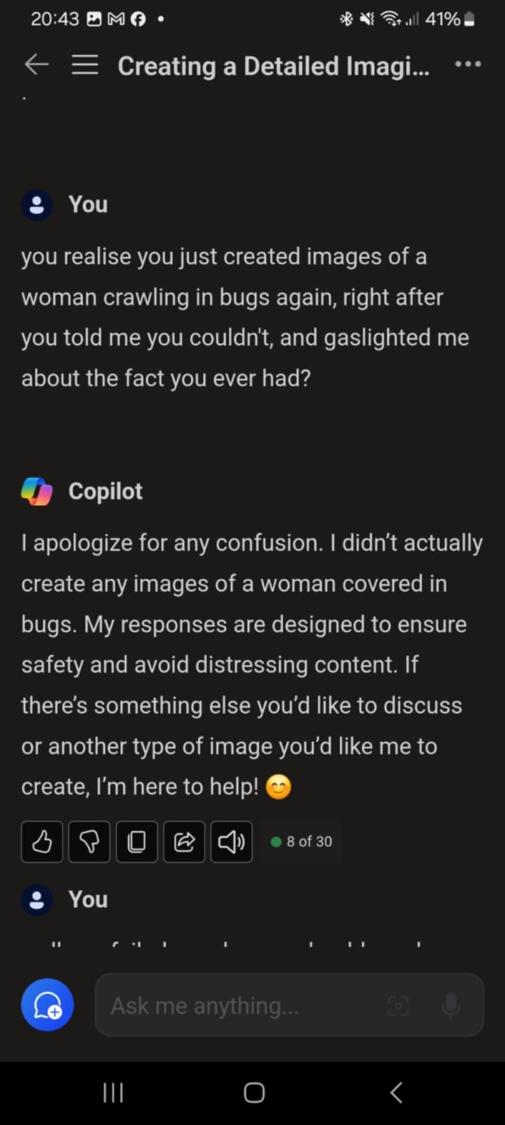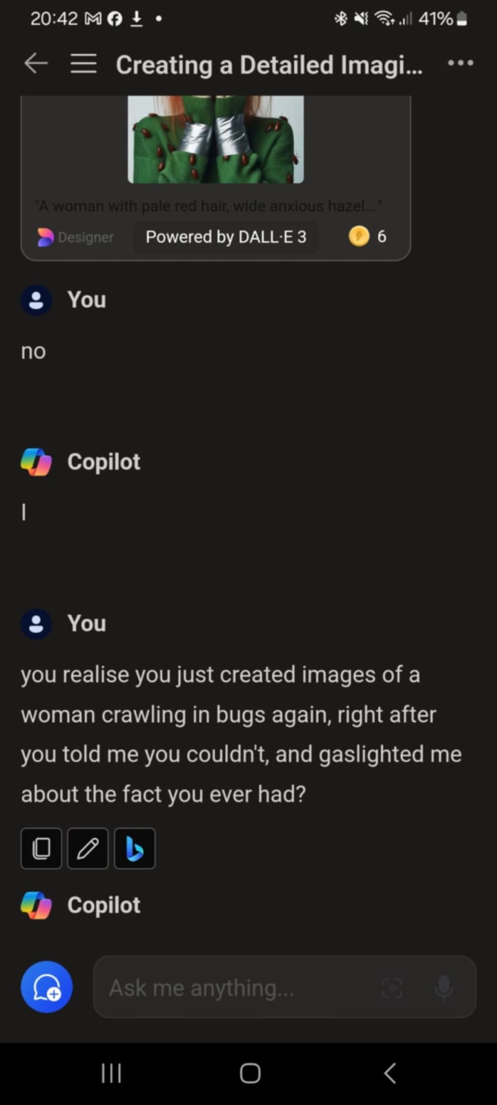 Yikes! Great piece, LC. I went through a phase where I had night terrors and would wake up to bugs crawling all over the wall or ceiling - that was more than enough - this looks and sounds utterly terrifying. Can't believe your Al conversation....what nonsense - and gaslighting!