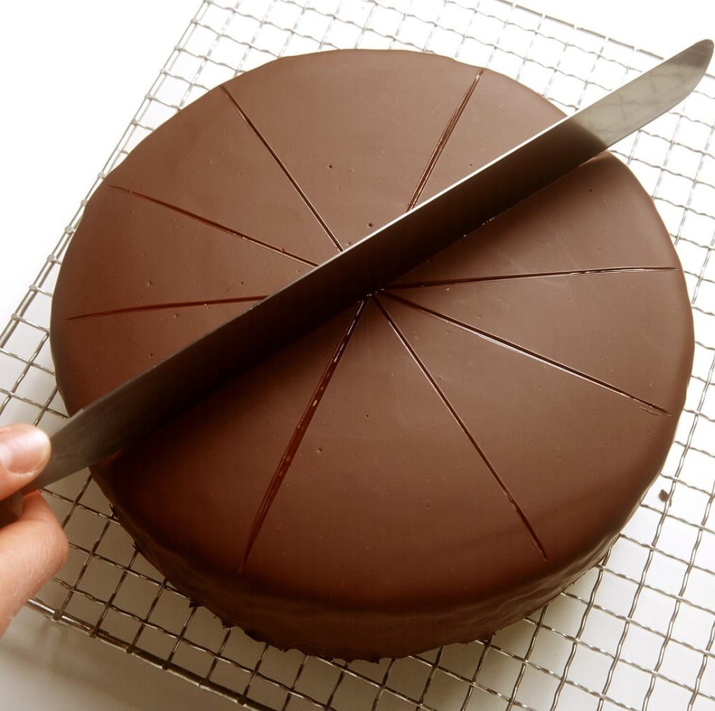 The slicing of a chocolate cake fills the room with tension.