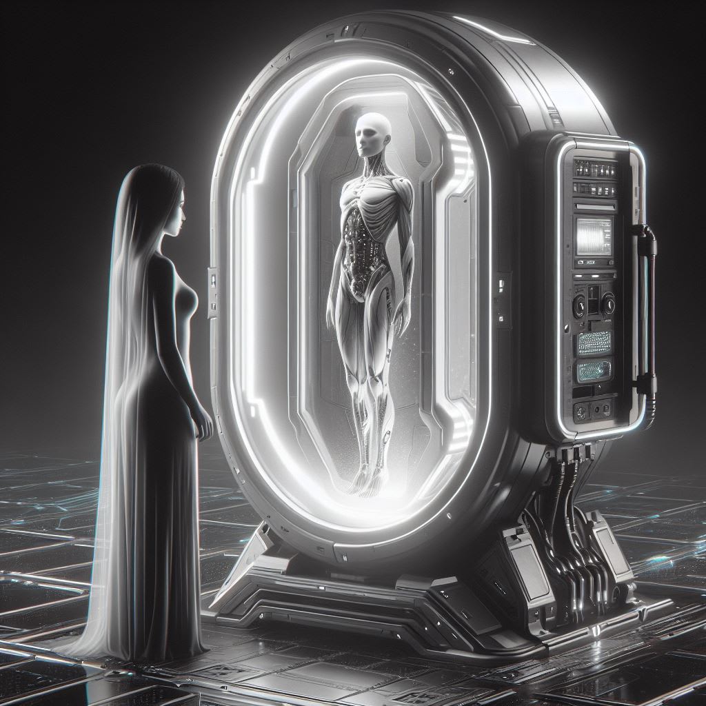 A body identical to the man she loved with all her heart rested inside a module with a glass covering. She almost forgot his handsome appearance and savored his delicate features and short, black hair. The tears kept coming as she held her mouth to stop from whimpering.