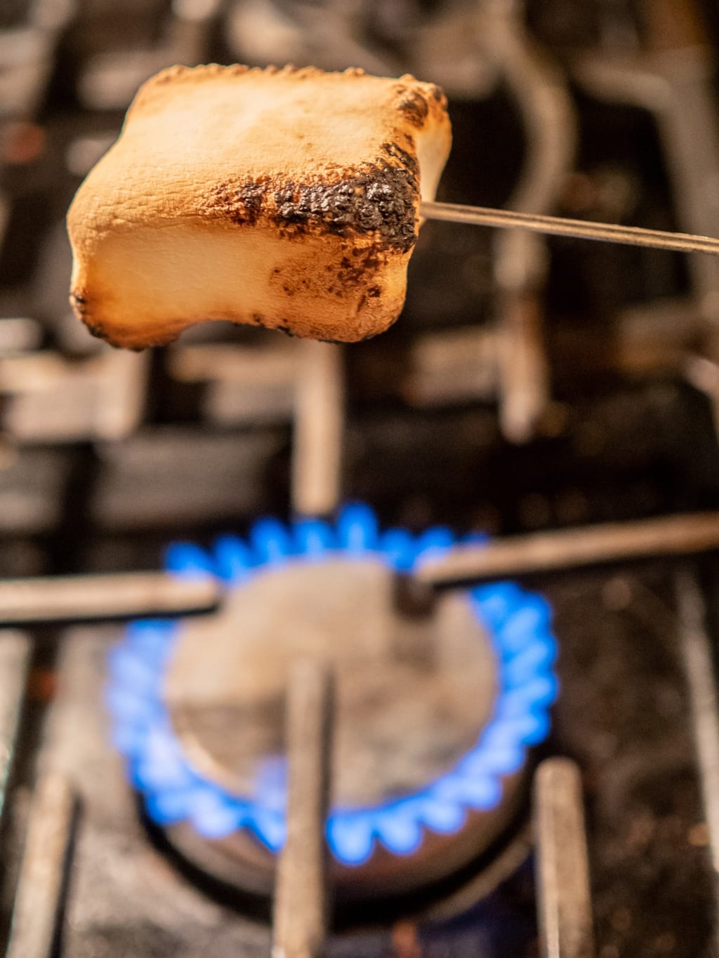 Taking his marshmallow away from the stove, Charlie drizzles on some melted chocolate and takes a bite, spilling a drop on his jumper. The treat coats his tongue, a mixture of light fluff and gooey cocoa dancing along his tastebuds.