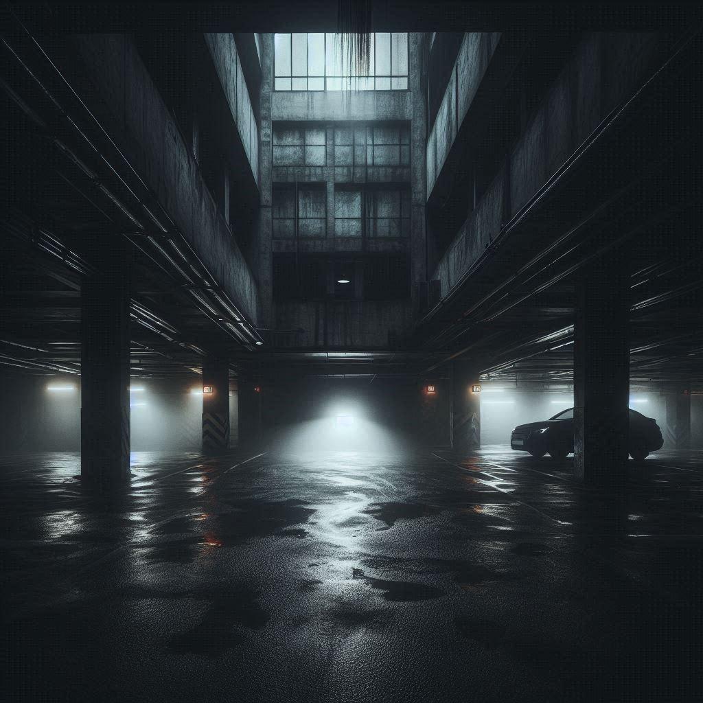 Listen to the rhythm of her flight, until she strides over to another door, and bulls her way through. Checks this way and that. Nobody there. She heads towards her own vehicle, steps checkered with nerves and purpose. One hand is bunched in her pocket. In the other, something shines metallic between her fingers in the grim light.