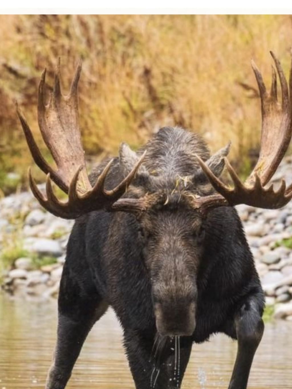 ”Don’t make contact”, I have a vague memory of someone, somewhere, telling me this. Is scream it at my husband. We are frozen in place. The moose taking steps toward us, slowly, methodically, stomping it’s hoof each time it moves. What next. It can kill us, we know! We avoid eye contact, standing still as statues. Will it work? We can almost feel it’s warm breathe as it towers so much taller than us. Mucus running from its nostrils. Do we make a run for it? Our instincts tell us no. We stand our ground, statues, barely able to breathe. Here he comes. Stepping, stomping. My god, he charges. His rack penetrates my husbands chest, tossing him aside like a rag doll. I’m next. I run, not fast enough, I feel it, I’m down. He has won.