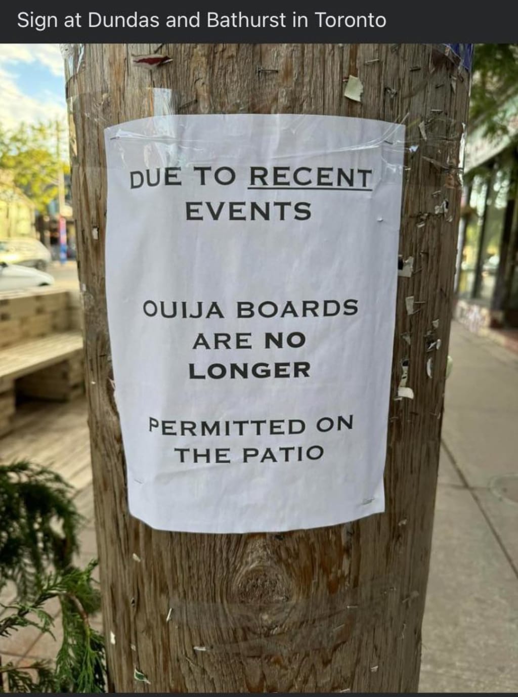 Due to recent events, ouija boards are no longer permitted on the patio