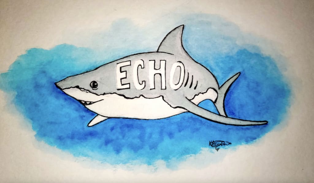 He begins- “So my name is Echo and I’m a great white shark, not the type you see many pictures of; in fact some people often confuse me with a bully shark because I’m around eight feet tall when I should be eleven feet and 700lbs when I should be 1200lbs. It’s pretty embarrassing, especially when you attend the annual feast fest and your own family questions whether you should eat with them or be eaten by them.