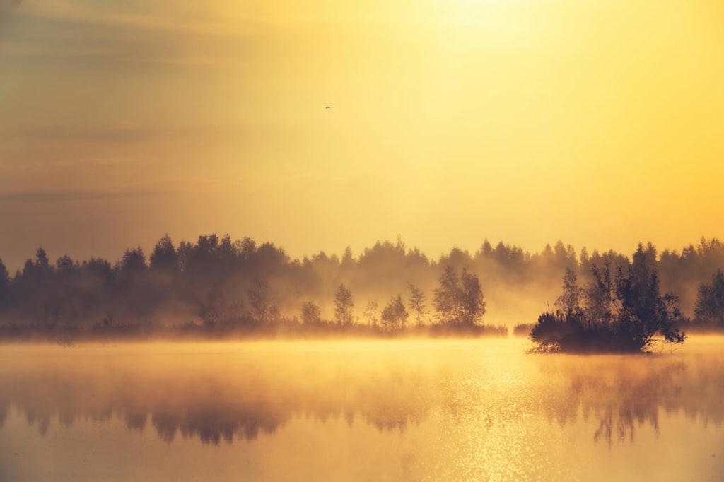 The sun was setting now, casting a vibrant gold sheen on the water, dying the sky soft hues of pink, purple, orange, yellow, and amber. The honey-like glow stretched on forever.