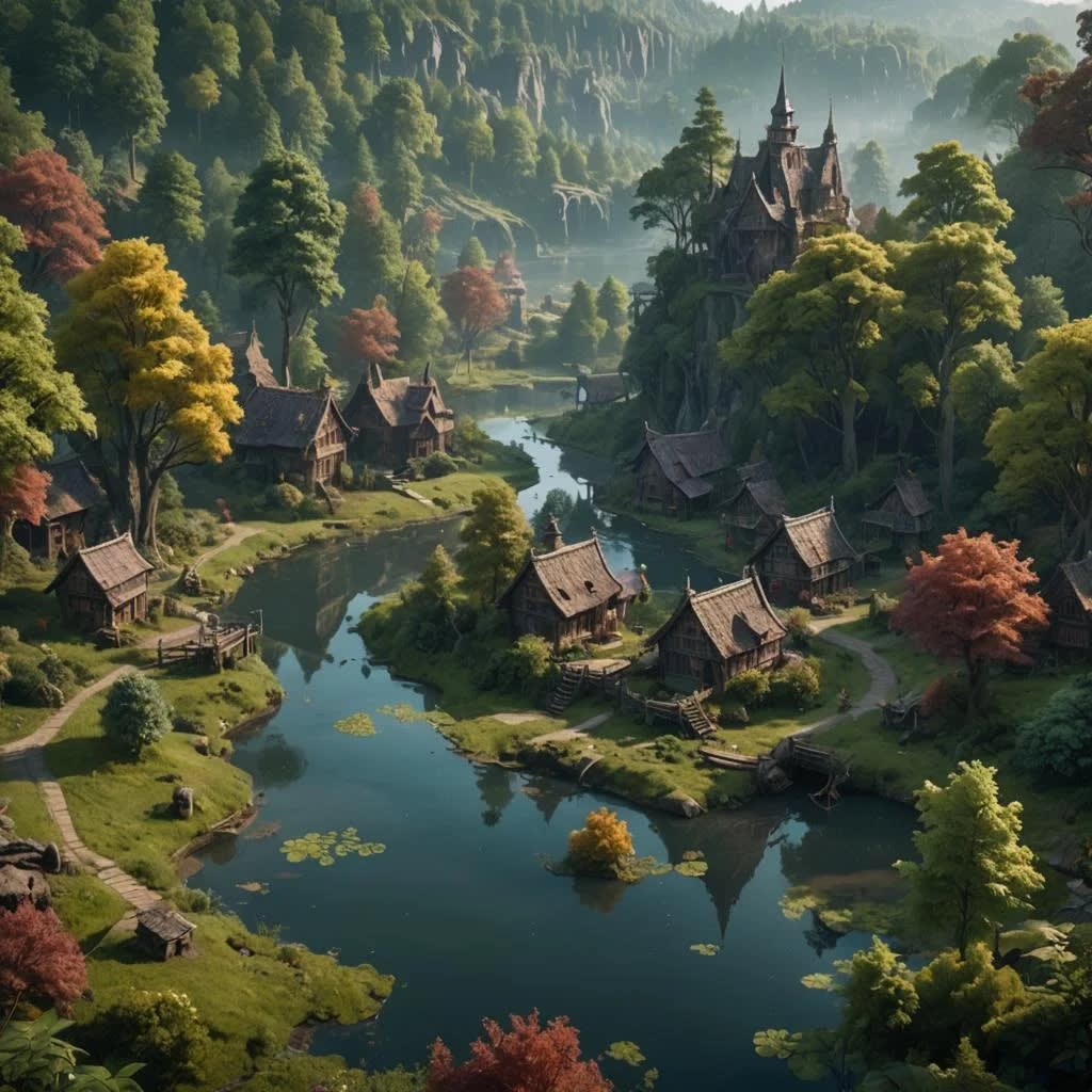 The trees were very tall and I wondered why there was a village here. This was the only way in and it didn't look like there was another way out as the far end of the village was a large pond.