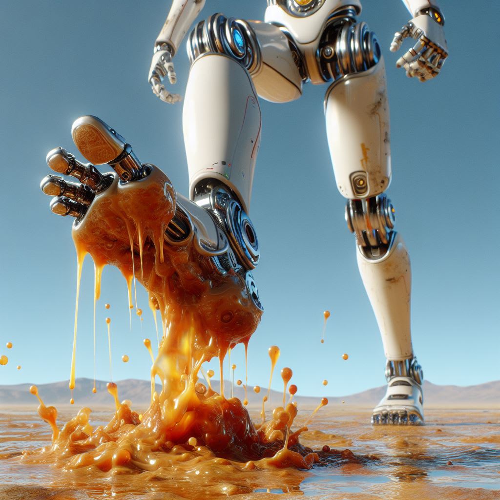 In a mechanical embrace, OZ999 extended a metal foot, nonchalantly, to step on a eukaryote he eyed moving in the dirt.
