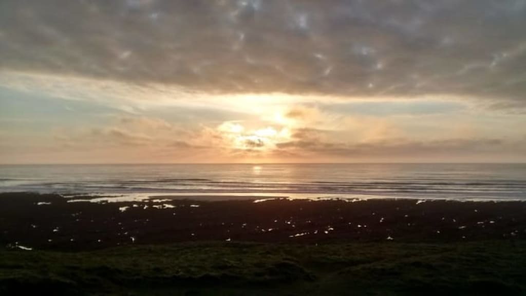 Contentment. Often a dirty and negative word, it best describes the feeling of belonging they have to one another. As they lie on the grass, gazing up at the sun as it dances in the sky for them before the curtains close on another day. As the salty sea breeze fills their lungs pleasantly and they embrace. Contentment in one another and the coast that has humbled them throughout their life together.