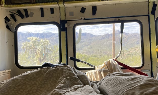 After the full moon ceremony, I talked about how I’d seen an unexpected owl with Genevieve. She, also, had seen a white owl. I found that interesting, but it didn’t explain anything in a useful way. Time passed, and I forgot the owl. People’s vans and buses got built out more and more. Eventually, most of us moved out of the Craggy Wash BLM Land and went our separate ways. Genevieve told me about a friend of hers who was organizing a monthlong intentional community event on a large piece of property in southern Arizona. I got in contact with the host, and was invited to come, even though I couldn’t afford to pay like most participants. I went back and forth about going; I decided no, for a while; but, eventually, I committed to coming, knowing very little about what I was putting my faith into. The community involved about 15 people living in tents, vans, RVs, and buses around the large property, with the host’s house available for kitchen and bathroom use. There were lots of really interesting people gathered there, and I grew to like the group. Funnily enough, Genevieve and the other people I’d known previously all left a week into the month-long event, while I stayed. A chain had led me to that land, and though none of my old hands still held me, after that first week I knew I was in the right place.