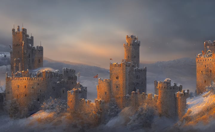 Far to the west, Tatsuhana (龍花) flew day and night while gently clutching the young boy in her mighty claws. She stopped only to give the boy some rest and nourishment, and encouraged him to sleep while she flew. She did not need much rest herself. The boy remained silent the entire time, showing no sign of fear, simply wonderment and acceptance of all that was happening. The dragon and the boy traveled together for nearly a full month, always heading west, until Tatsuhana (龍花) finally noticed a large stone keep in the distance. The time was nearing dusk and Tatsuhana (龍花) knew that any residents or patrolmen outside of the keep should be heading back in for the night soon. She flew silently and approached with caution because people of the West often fought with dragons and would not likely be receptive to her presence.