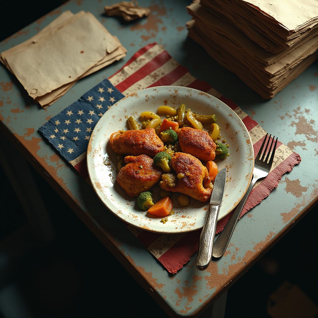 Despite the fresh vegetables and copious briefing notes, he was still denied his freedom. The freedom he had a right to, as an American. Hadn't he served well before? And the people, the people loved him! He'd won a second time. It had been a joke when he'd been brought in here. A bad joke. A dream. A bad dream. A terrible dream. He'd thought, this is all a mistake. I'll be out of here in no time. He was still here. His brow dropped further, as if hoping to meet his pout halfway.