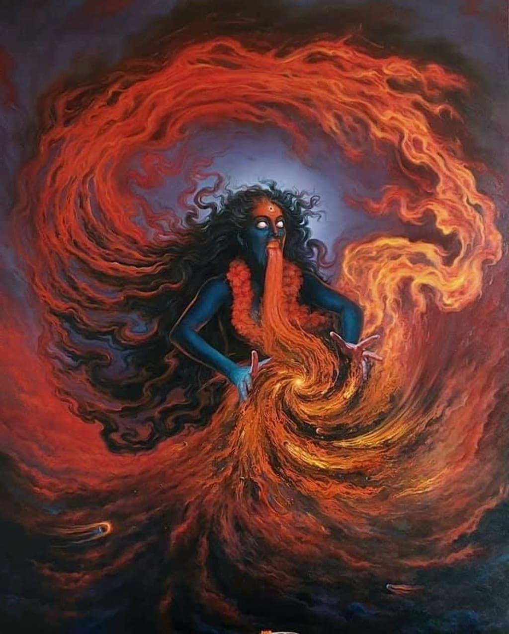 He reached his house and locked the door. But the Kali's laughter echoed through the house. He saw her in every corner, in every shadow. He could not escape her.