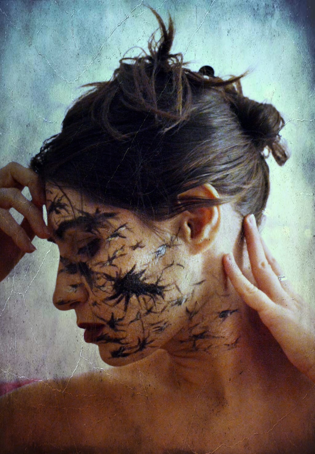 You stop sleeping during the night. You watch Ben sleep instead and on the seventh day it happens right before your eyes. His breathing quickens, as if he is having a nightmare. Before you can wake him, he gives a choked gasp. Blood gushes from newly-formed cuts on his throat, arms, legs…