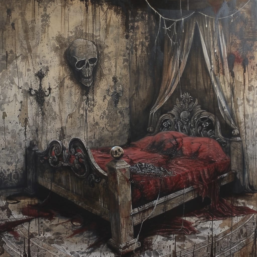 George screamed in his head as it opened its mouth to reveal blackened stumps of teeth as it straddled him. George wanted to be sick. The thing started to breathe in deep and slow and then, like a serpent, unhinged its jaw. George could do nothing as its thin, maggoty white lips covered his, suctioning tight over his entire mouth.
