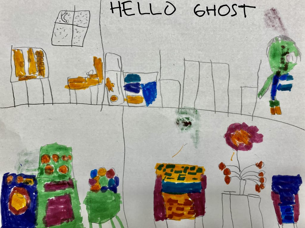 "Hopefully these two ghosts will go away." Ella said to her self while throwing the crumpled papers at them.