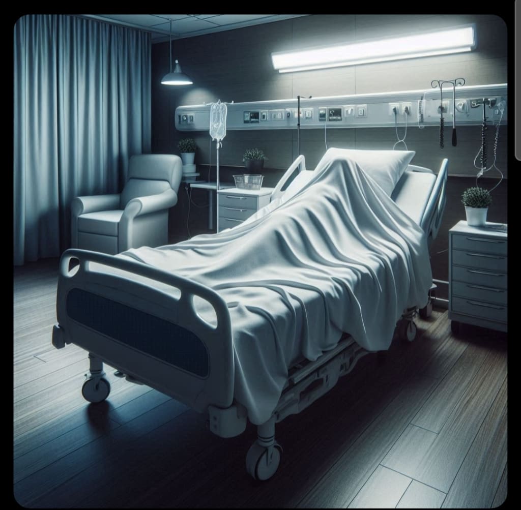 It's dark. The patients are asleep. My shoes squeak. I barely notice the antiseptic smell anymore, but now it feels strong in my nose.