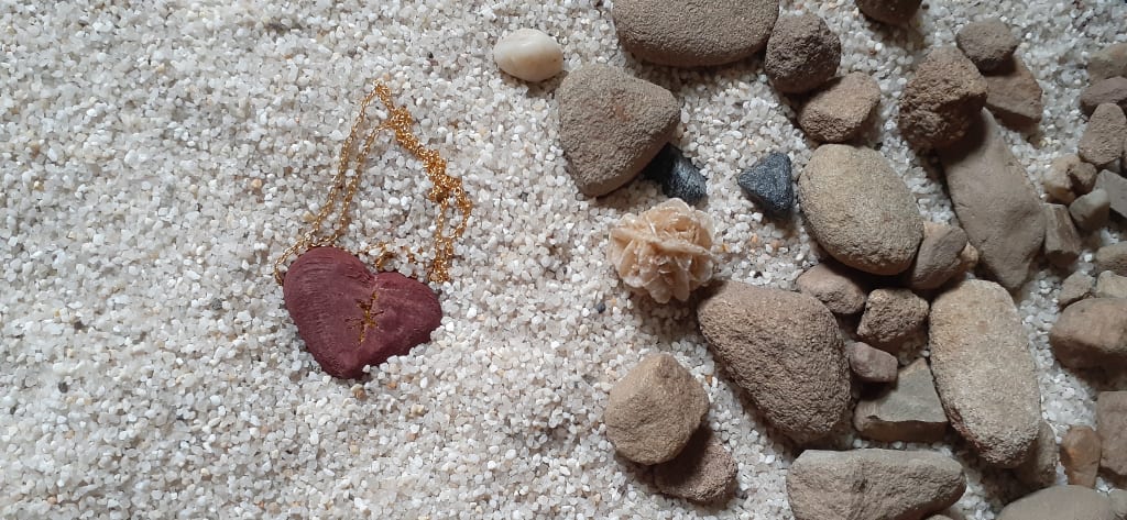 Two days she had been walking, following a map she found in a heart-shaped locket. The trinket was wooden, hand-carved, and contained three things; a folded paper map, a micro SD card, and a photograph embedded into the back depicting—well, she didn’t know. It was a unique stone configuration, manmade or natural; she couldn’t tell in the tiny picture.