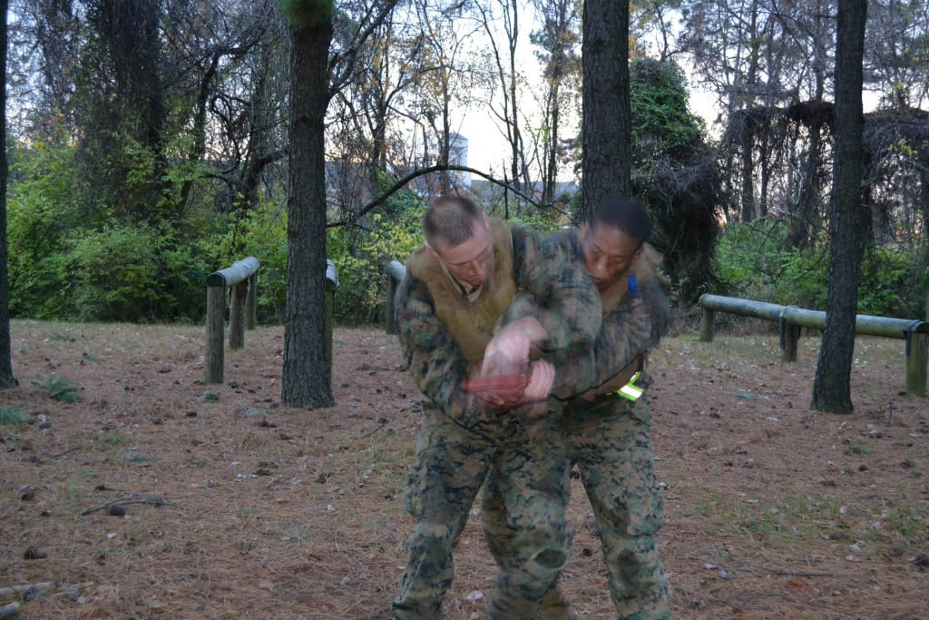 “Just a little impromptu martial arts, Gunny! Working on technique!”