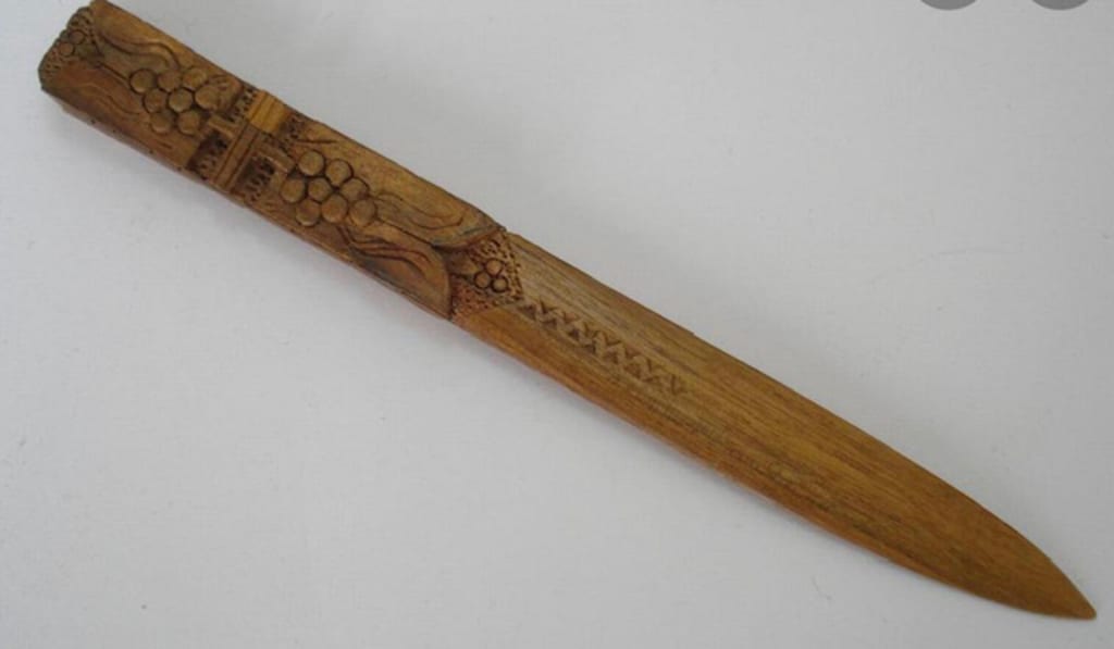 My brother fumbled at something on his hip, his eyes shooting wide. Panicked I tried to dive into the canoe, loosing my footing before I jumped. I landed half in half out of the boat as a heavy weight landed on my back. I tried to protect my neck from canine teeth, but they never came. Confused, I picked my head up. The hound’s body slid off me and into the water, my brother’s bamboo shiv sticking out from the hounds floppy ear, buried to the hilt.