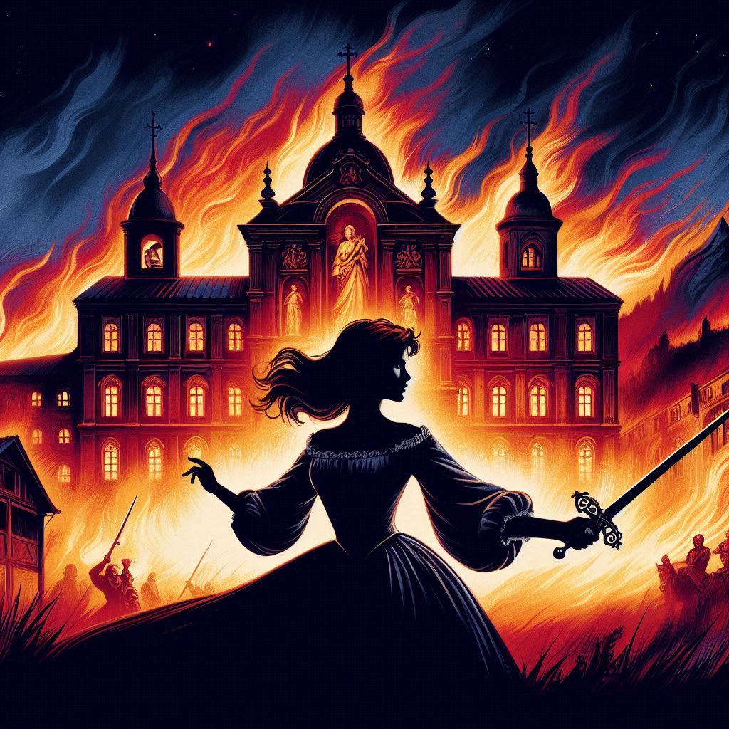 Hand in hand, we fled under the stars, the convent burning behind us.