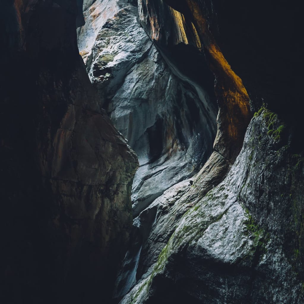 It was dark enough that he couldn't see at all - but he could hear. Hear the world growing warm and wet, hear himself breathing, alone. The sound of one person in a dark place, huddled in the corner of a cave.